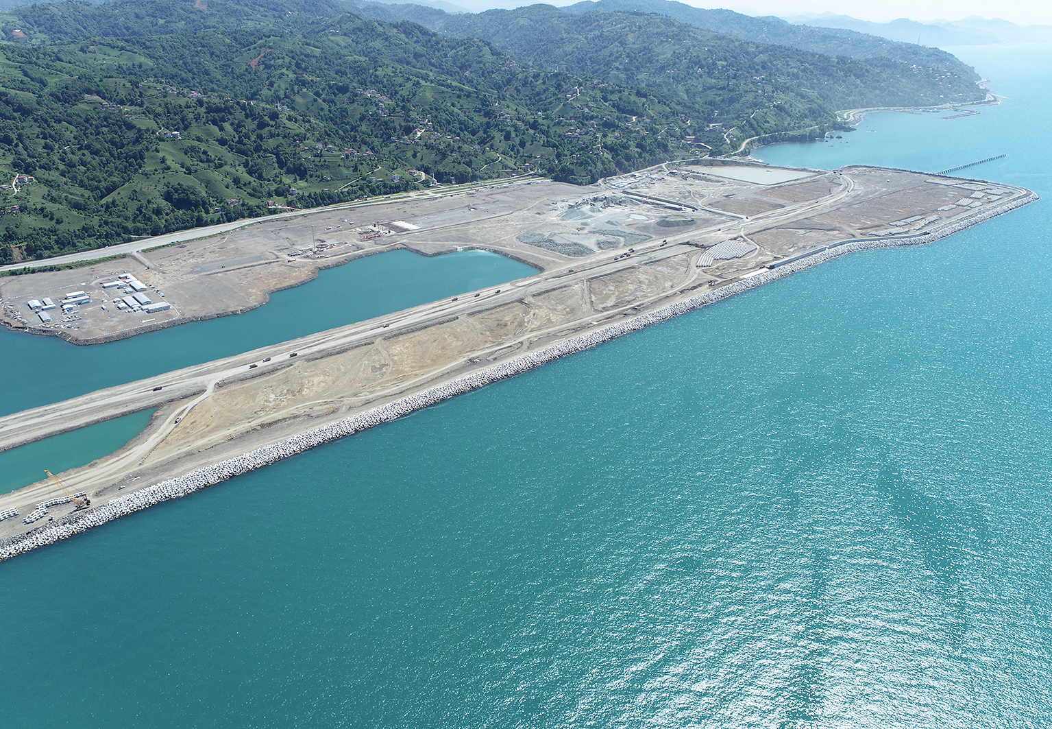 Proje Bilgileri: Türkiye’nin deniz üzerine inşa edilen ikinci havalimanı olma özelliğini taşıyan Rize – Artvin Havalimanı projesi kapsamında; ortalama 30 metre derinliğinde 85.000.000 m3 deniz dolgusu, 3.000 metre uzunluğunda ve 45 metre genişliğinde pist, 240×120 metre uzunluğunda apron, 265 metrelik taksirut, deniz üzerine 1.800 metre uzunluğunda yaklaşma ışıkları ile 32 – 45 tonluk tetrapod yapılmıştır.